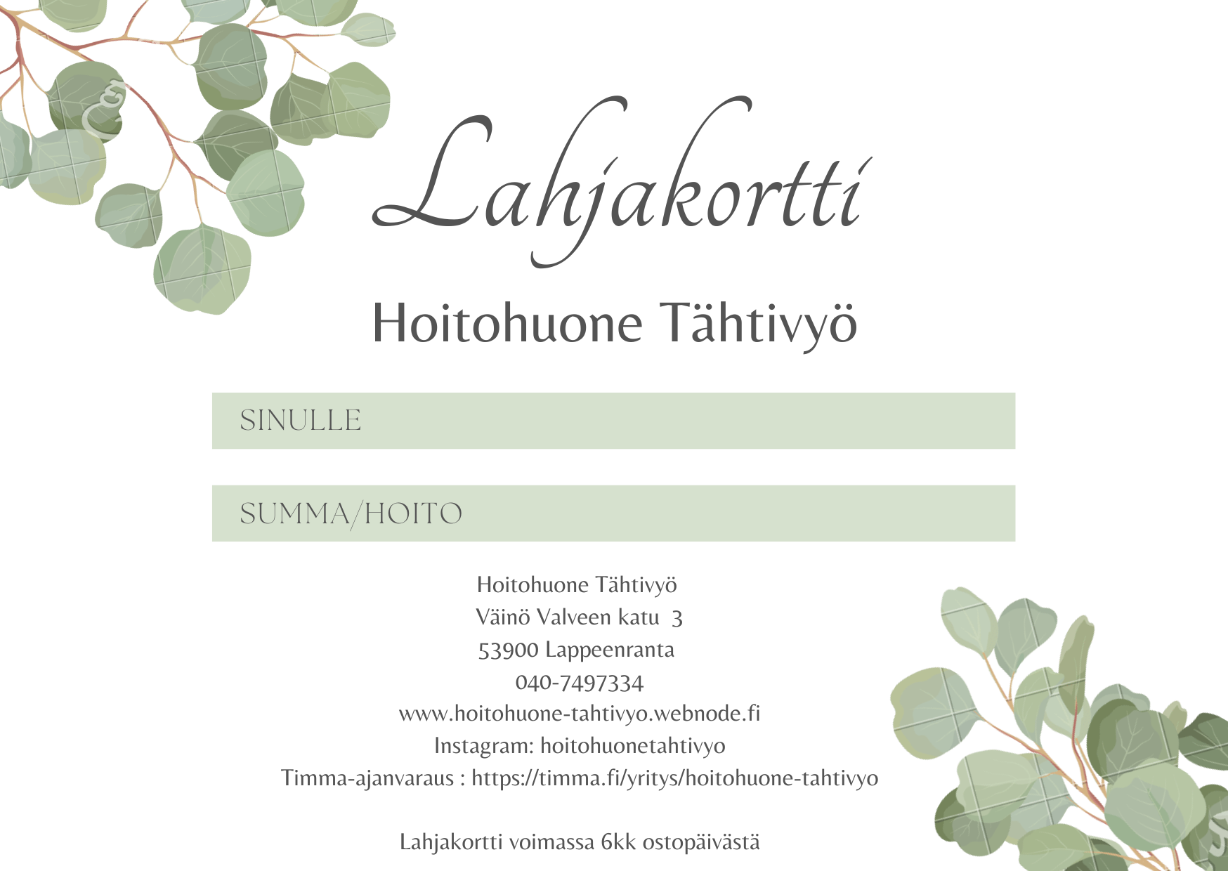 Saatavilla myös lahjakortit!